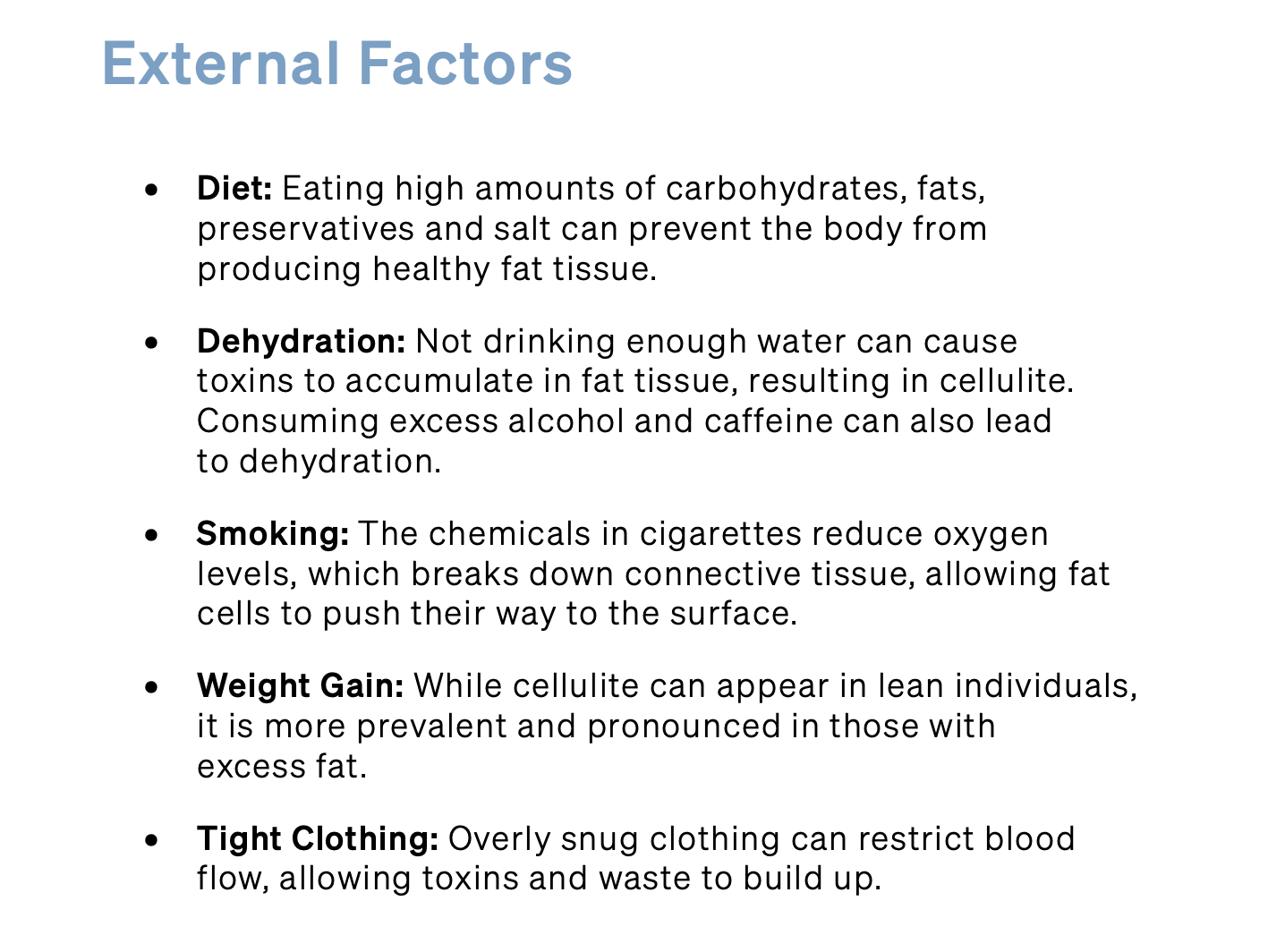 Keep in mind that cellulite is harmless and completely normal, affecting approx. 80-90% of women of any weight, build, and age!